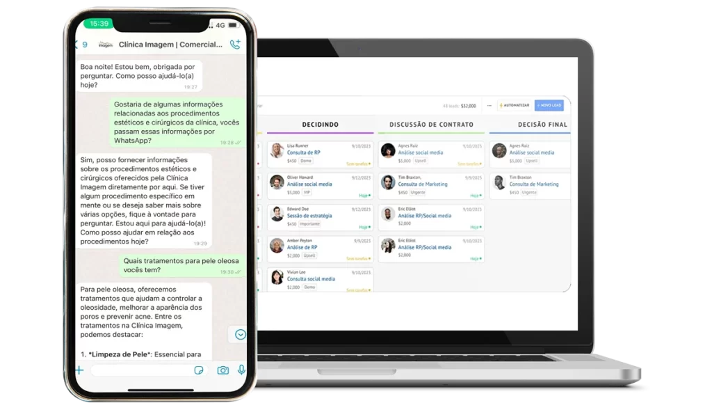 Converse com os pacientes e controle todos funis de vendas, agendamento e pós-venda em uma única plataforma.